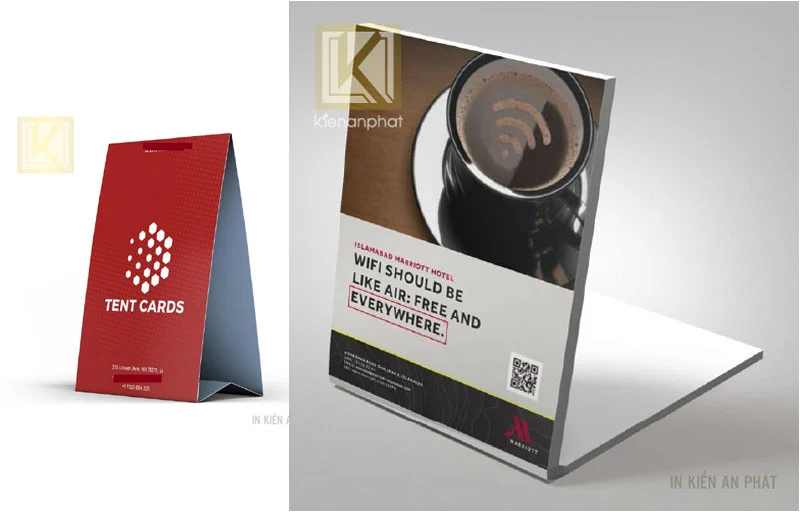 Tent card là một dạng bảng thông tin đặt bàn, thường có hình dạng chữ A hoặc đứng gập đôi.