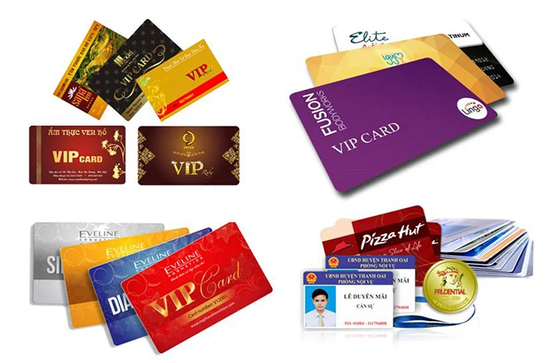 - Thẻ marketing: Thẻ VIP, thẻ thành viên, thẻ khách hàng thân thiết, thẻ quà tặng, thẻ bảo hành.